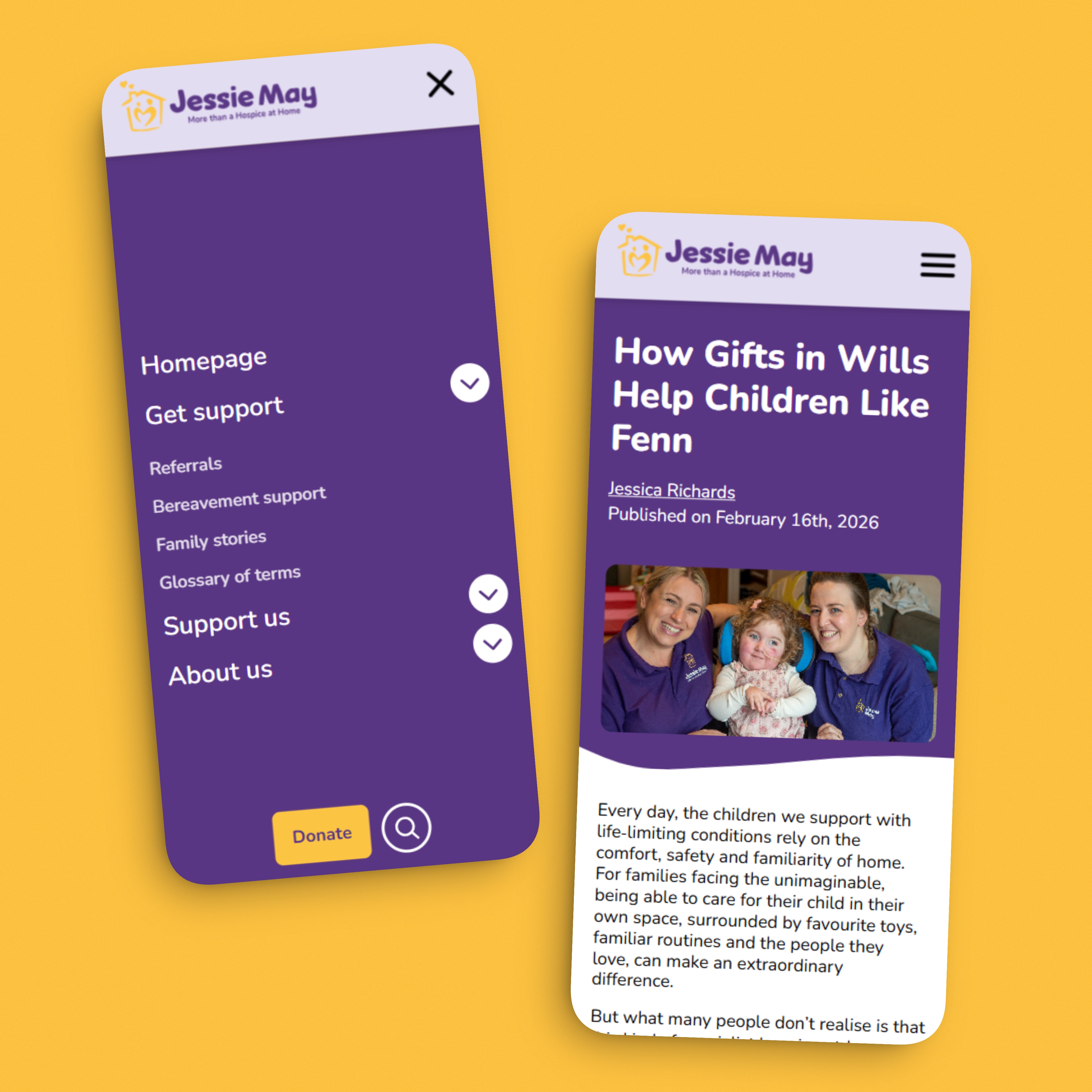 We designed and developed a completely new WordPress website, built to give the Jessie May team full control over their content, campaigns, and fundraising activity.